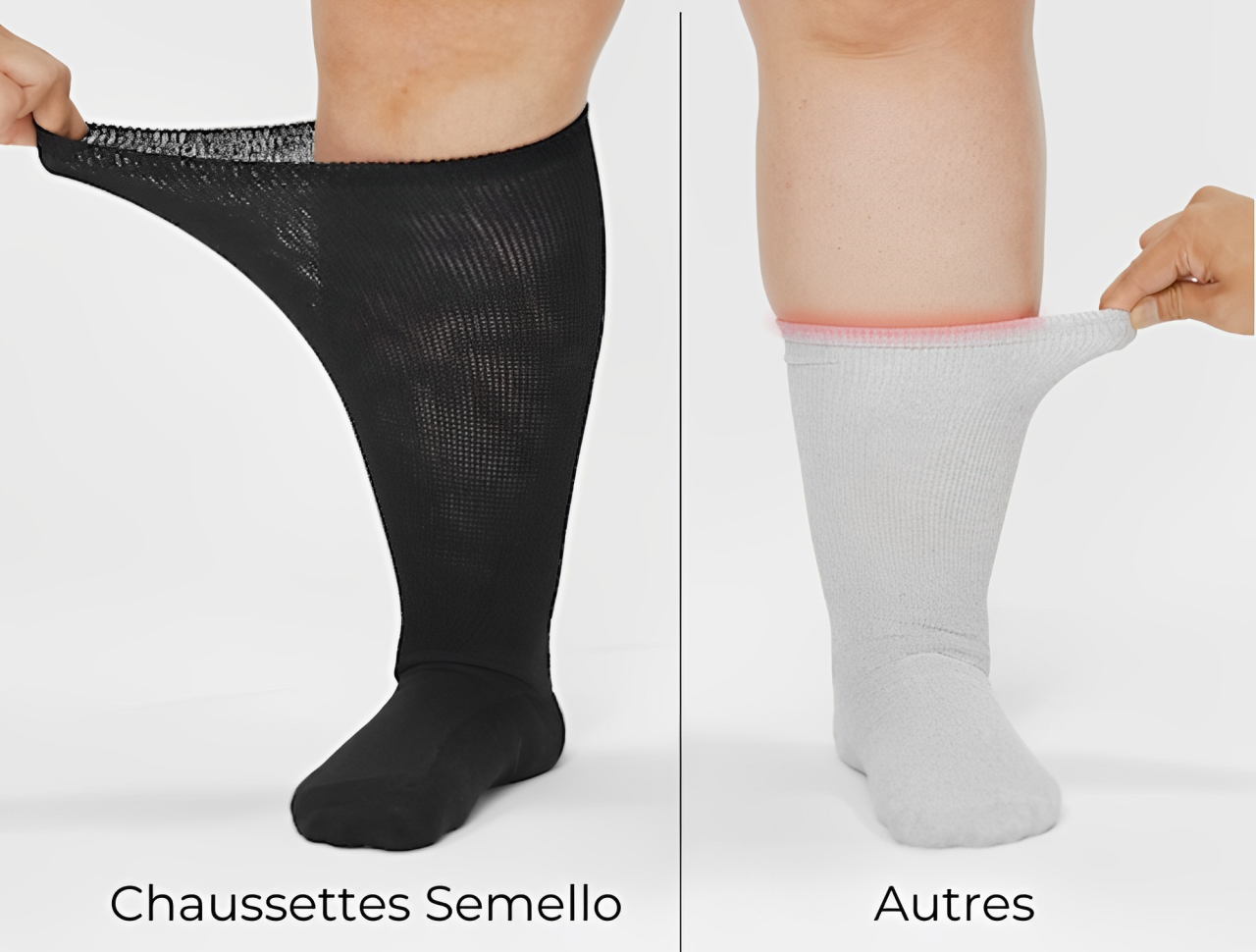 Conçu pour éviter tout serrage ou inconfort, il garantit un confort optimal tout au long de la journée. Idéal pour les jambes sensibles ou enflées, sans jamais compromettre la circulation.